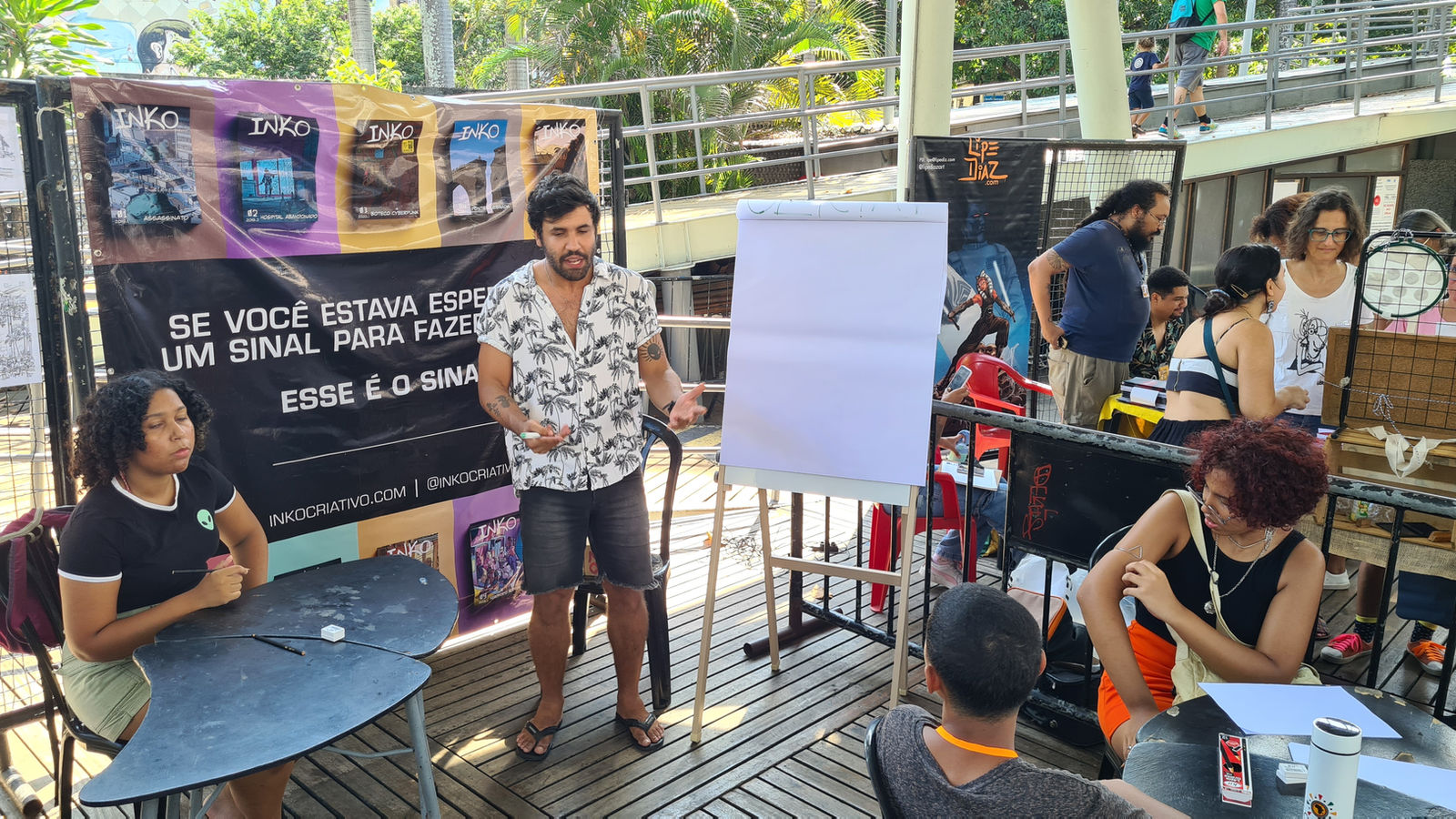 Oferecemos cursos de quadrinhos, ilustração e outras linguagens artísticas, com aulas práticas, materiais exclusivos e acompanhamento de profissionais do mercado. Na Inko Escola, cada projeto é uma oportunidade de aprender, experimentar e evoluir, transformando paixão em habilidade concreta.